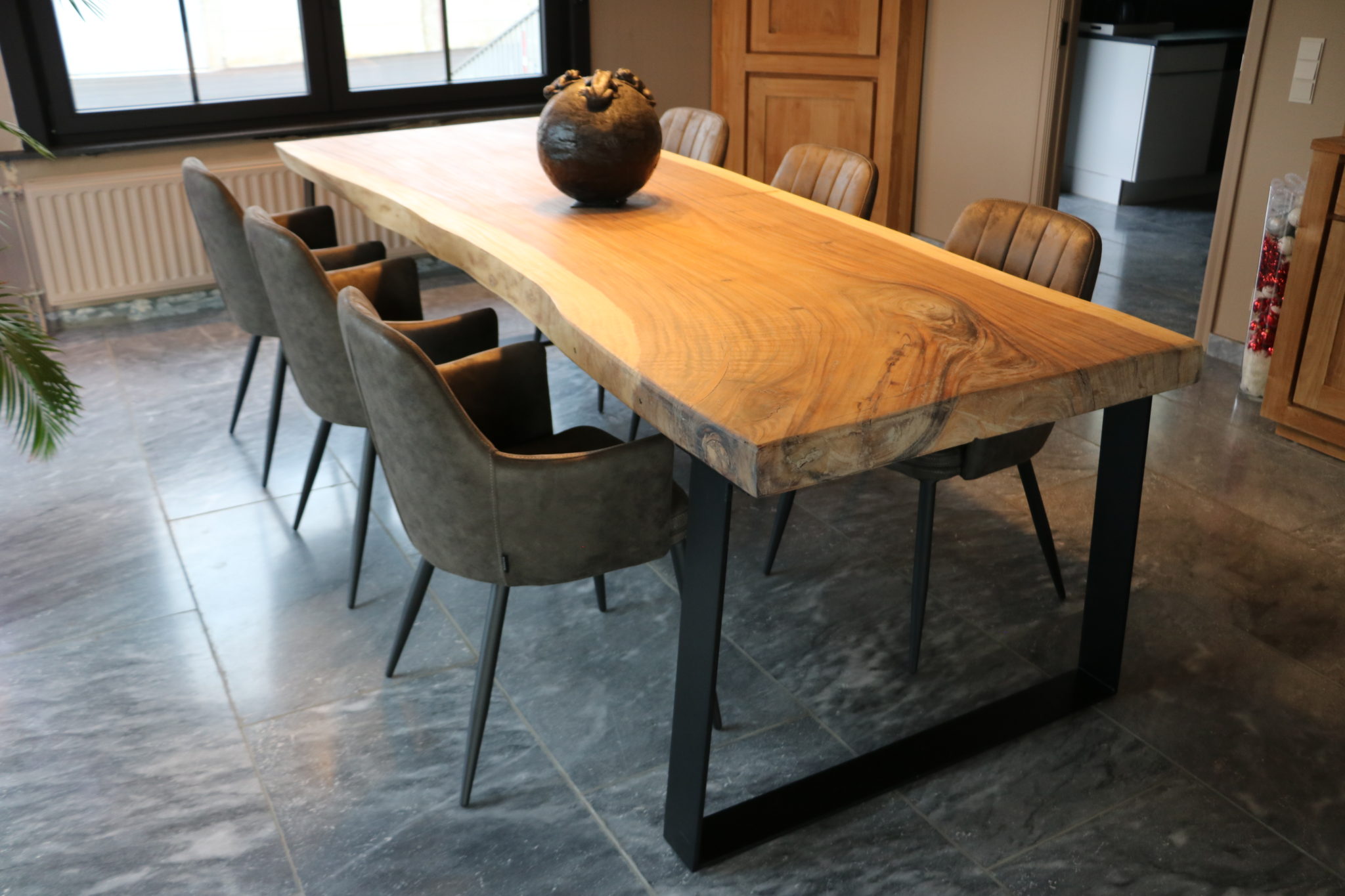 boomstamtafel met zwart metalen onderstel