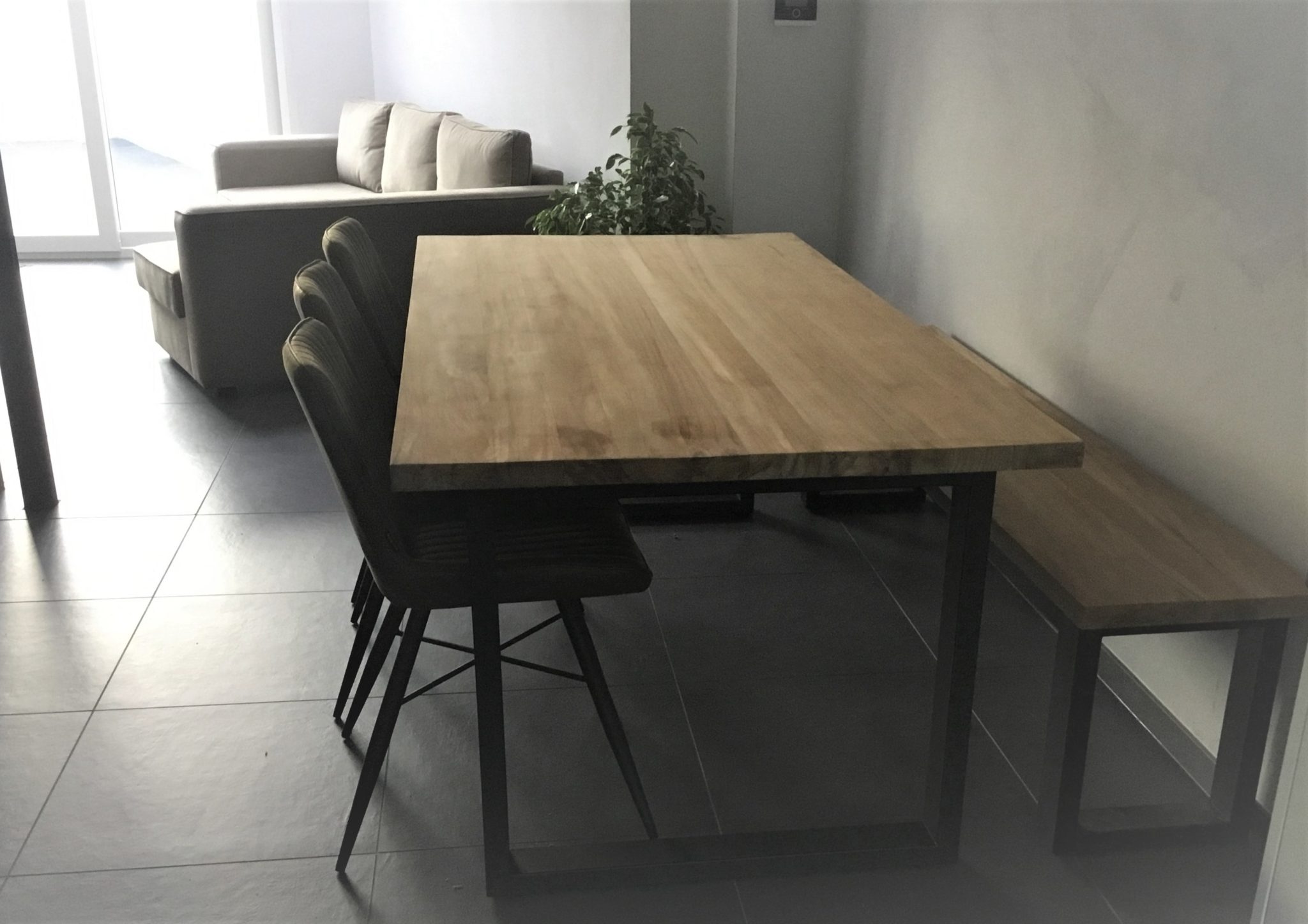 tafel met ijzeren poot teak